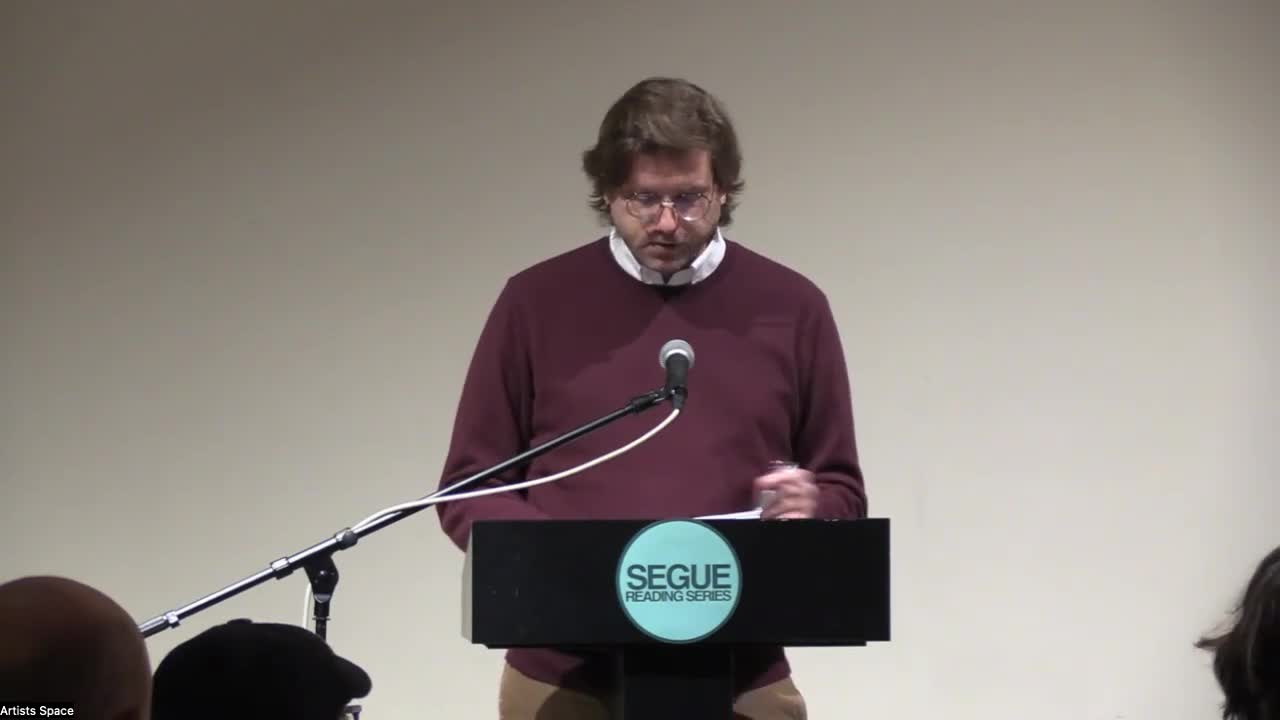 Segue Reading Series: Lauren Whitehead & Miles Champion. Reading Documentation. Saturday, December 19, 2020, 5pm. Artists Space, New York. [Video documentation of multiple individuals making introductions and reciting poetry with the use of imagery.] -